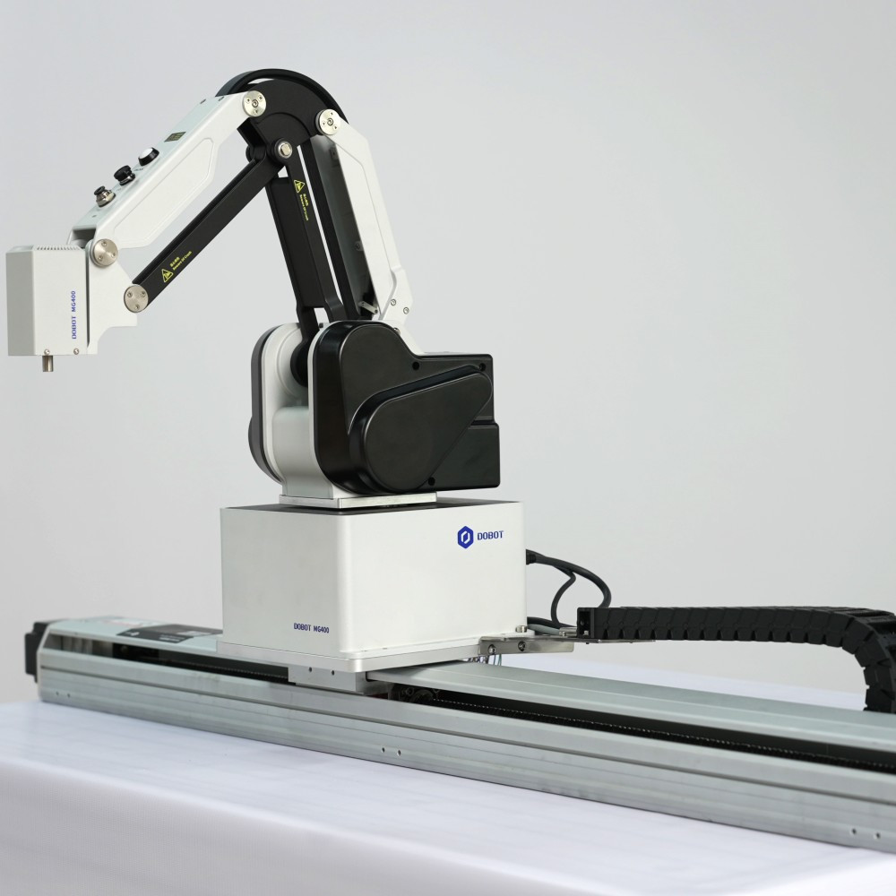 With an additional one metre operating range, the MG400 (PRO) robotic arm can pick up objects at greater distances, making it an efficient solution for robotic, automated tasks such as packaging, palletising, pick-and-place, assembly and machine handling applications, whether in vocational training, IT, robotics education or industry. An essential extra accessory for the MG400 family of robotic arms.