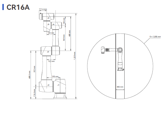 DOBOT CR16A - Kollaboratív ipari robotkar 16kg terhelhetőséggel és 1000mm hatótávolsággal