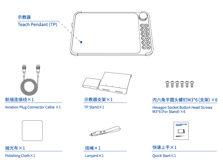 Multiple Buttons for Effortless Operation 3-Position Switchgear : Configurable for 3-position enable or drag-and-drop mode , enhancing safety and control.12 Physical Pushbuttons : Enables more flexible teaching operations, significantly improving debugging efficiency.Superior Safety and Reliability